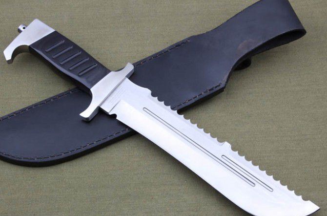 全 长:390mm 刃 长:252mm 柄 长:138mm 刃 宽:48mm 刃 厚:6.0mm 刃 材:5Cr13Mov 重 量:986g(含包装) 硬 度:57HRC 表 面:沙光 柄 材:双钢头黑檀木 锁 型:定锁 其 他:配牛皮套和彩盒