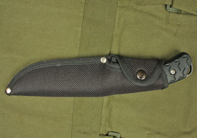 全长: 23cm 柄长: 12.3cm 刃长: 10.5cm 刃厚: 0.4cm 重量: 380克 刃材: 440 柄材:精铸铝 硬度:56HRC 表面处理: 高温黑漆 配战术尼龙刀鞘