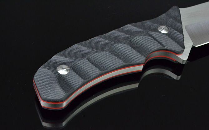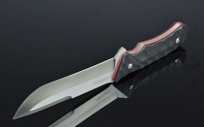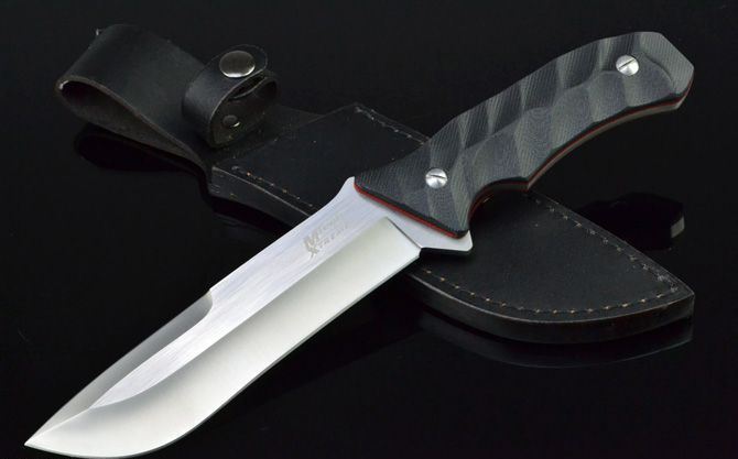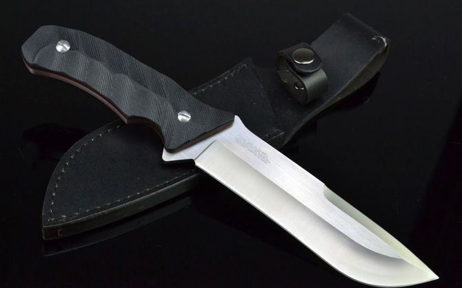 全 长:295mm 刃 长:160mm 柄 长:132mm 刃 宽:40mm 刃 厚:5.5mm 刃 材:5Cr13Mov 重 量:540g(含包装) 硬 度:57HRC 表 面:砂光 柄 材:双色G10 锁 型:定锁 其 他:配牛皮套和彩盒