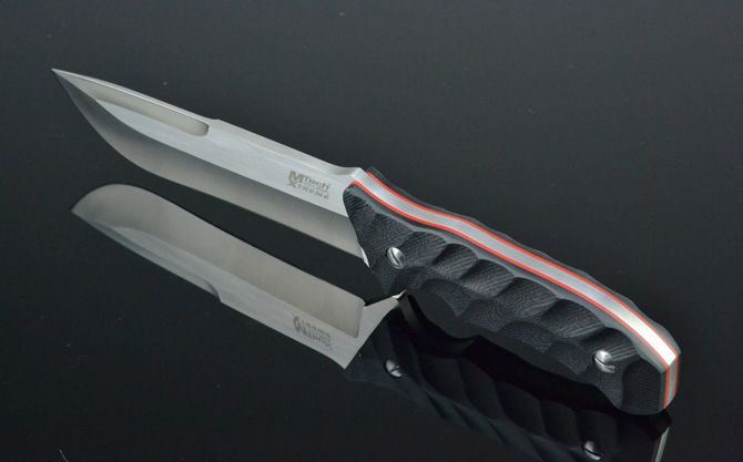 MT-TY02小开山 全 长:295mm 刃 长:160mm 柄 长:132mm 刃 宽:40mm 刃 厚:5.5mm 刃 材:5Cr13Mov 重 量:540g(含包装) 硬 度:57HRC 表 面:砂光 柄 材:双色G10 锁 型:定锁 其 他:配牛皮套和彩盒
