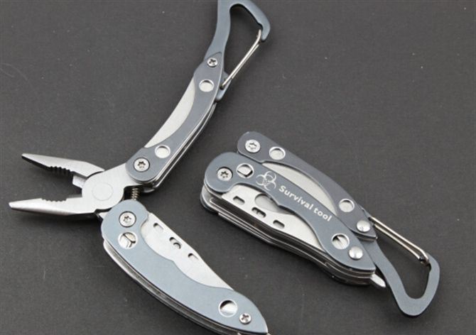 登山扣钳子MT821 全长:12cm 柄长:8.5cm 刃材: 3Cr13 柄材: 钢+ABS 硬度: 54HRC 重量:320克(含包装) 表面处理: 砂光 锁型: 弹力