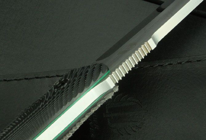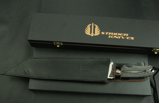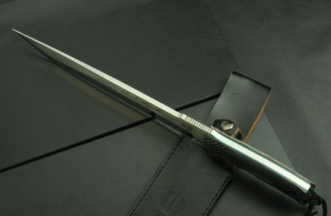 全 长:445mm 刃 长:285mm 柄 长:140mm 刃 宽:43mm 刃 厚:6.2mm 刃 材:5Cr13Mov 重 量:860g(含包装) 硬 度:57HRC 表 面:砂光 柄 材:双色G10 锁 型:定锁 其 他:配牛皮套和木盒