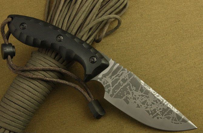 全长:240mm 刃长:115mm 刃厚:4.5mm 刃宽: 40mm 刃材: 7Cr17 柄材: 黑G10 硬度: 56-58HRC 总重:360 克(含刀鞘) 刀套:皮套这是一款仿日本刀匠松田菊男的花纹刀,由最初的喜爱,好奇到自己慢慢去摸索工艺,推出了这款花纹刀,在此对菊男先生表示敬意。 为了更满足刀友对刀具内在本质的日渐苛刻的追求,这款刀选用了高端技术和好材质,让刀更完美。