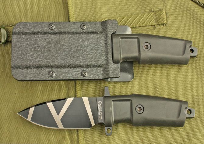 精仿极端武力-小直(钛纹版尖头) 全 长: 21cm 刃 长: 11cm 刃 厚: 6.1mm 刃 材: 8CR13MOV 硬 度: 58HRC 重 量: 360g 表 面: 黑钛 柄 材: 橡塑 刀 鞘: ABS