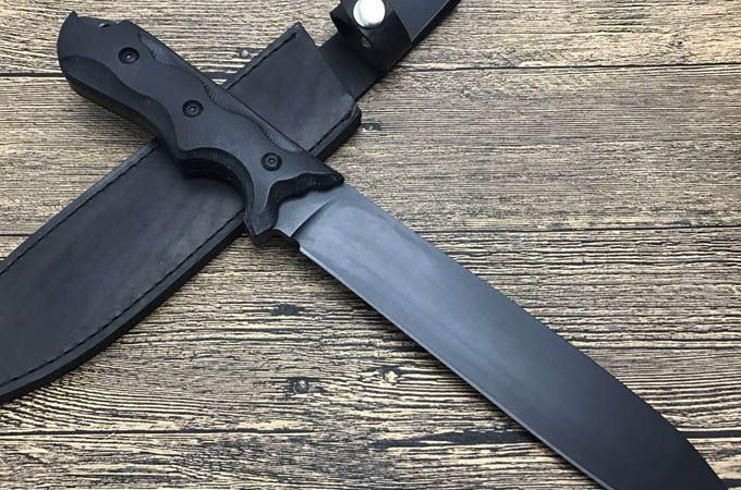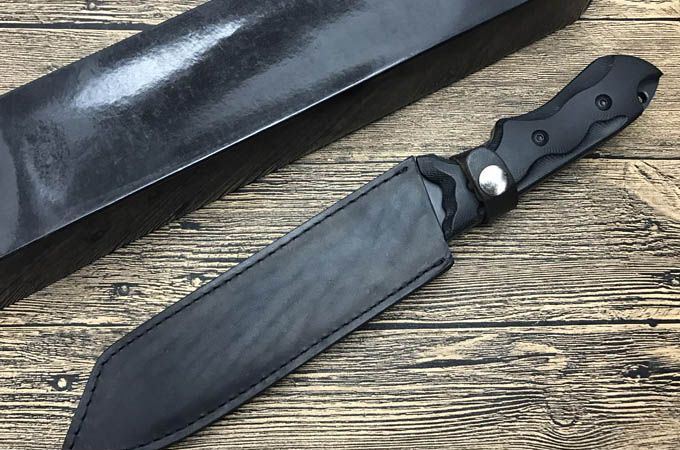 全 长: 34.2cm 刃 长: 20cm 刃 厚: 5.6mm 刃 材: 440 硬 度: 57HRC 重 量: 480g 总 重: 700g 表 面: 氧化黑 柄 材: 复合材料 刀 鞘: 牛皮