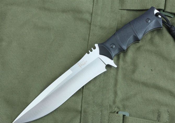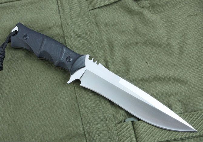 全 长:290mm 刃 长:165mm 柄 长:120mm 刃 宽:35mm 刃 厚:5.1mm 刃 材:5Cr13Mov 重 量:460g(含包装) 硬 度:57HRC 表 面:砂光 柄 材:黑色G10 锁 型:定锁 其 他:配牛皮套+牛皮纸盒