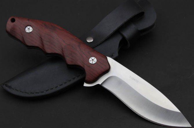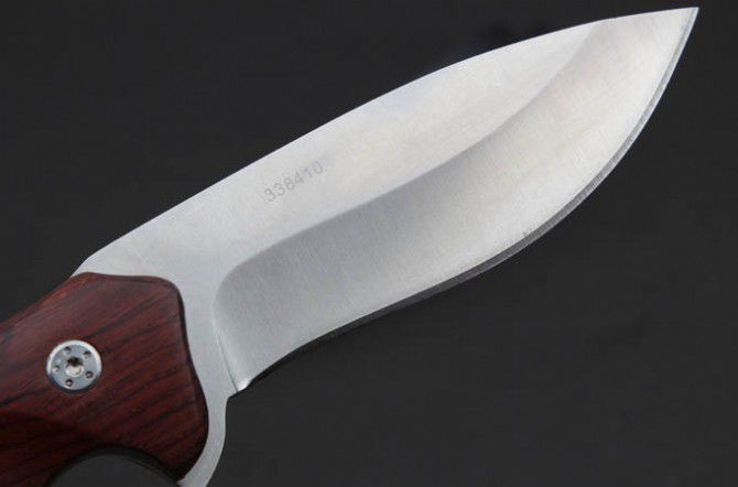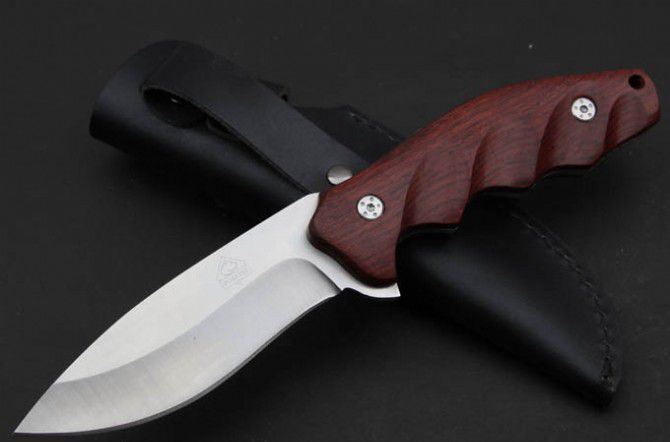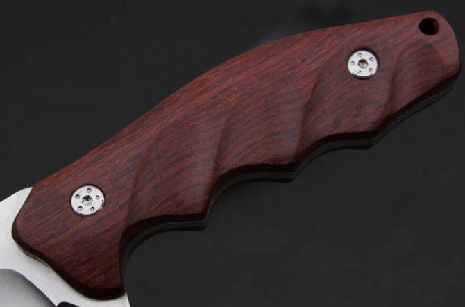 全 长:220mm 刃 长:102mm 柄 长:118mm 刃 宽:34mm 刃 厚:9.0mm 刃 材:9Cr18Mov 重 量:244g(含包装) 硬 度:59HRC 表 面:砂 柄 材:红木柄 锁 型:定锁 其 他:配牛皮套