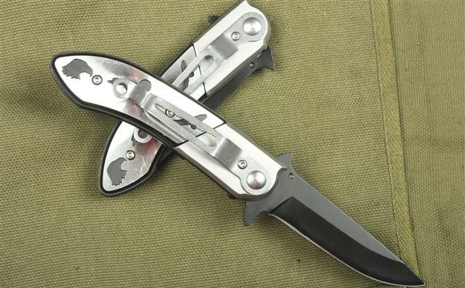哥伦比亚-百兽图 全长:17.5cm 刃长:7.5cm 柄长:10cm 刃厚:2mm 刃宽: 2.0cm 刃材: 3Cr13 柄材: 钢头+铝 硬度: 54HRC 净重:110克 毛重:120克 表面处理:氧化黑 锁型:半自动