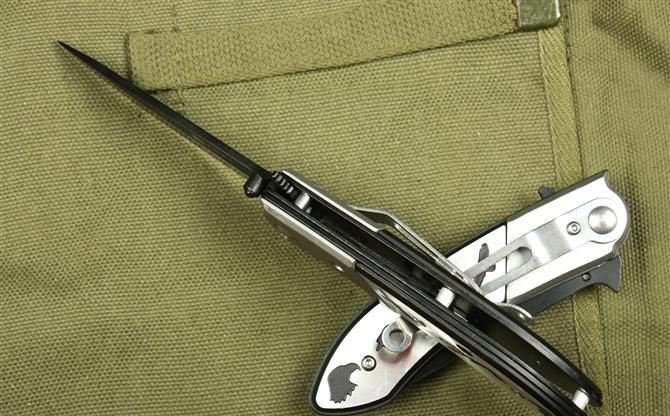 全长:17.5cm 刃长:7.5cm 柄长:10cm 刃厚:2mm 刃宽: 2.0cm 刃材: 3Cr13 柄材: 钢头+铝 硬度: 54HRC 净重:110克 毛重:120克 表面处理:氧化黑 锁型:半自动