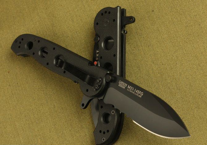 哥伦比亚—M21-14(尖头) 全长:23cm 刀刃:10cm 刃厚:0.38cm 刃宽:3cm 柄长:13.2cm 硬度:58HRC 净重:170g 材料:8Cr13 柄材:G10 锁型:线锁助力