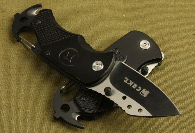 哥伦比亚-1683多功能折刀 全 长:14.8cm 刃 长:5.8cm 柄 长:9cm 刃 厚:2.3mm 刃 材:3Cr13 柄 材:铝柄 硬 度:53HRC 表 面:氧化黑 重 量:100g 锁 定: 快开
