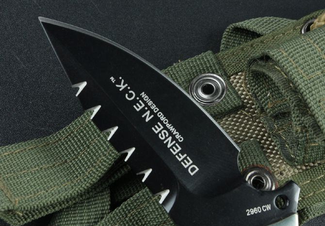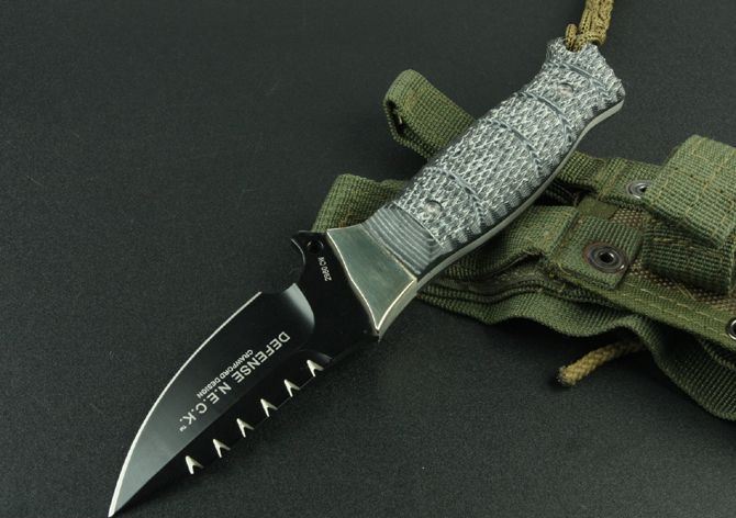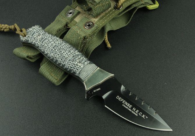 哥伦比亚—2960防御兵 全 长:20.5cm 刃 长:8.2cm 柄 长:11cm 刃 宽:3cm(最宽处) 刃 厚:0.41cm 刃 材:7Cr13 硬 度:58HRC 刀 柄:进口亚麻 表 面:氧化黑 刀 重:195克 总 重:400克(含包装物) 备 注:战术尼龙套