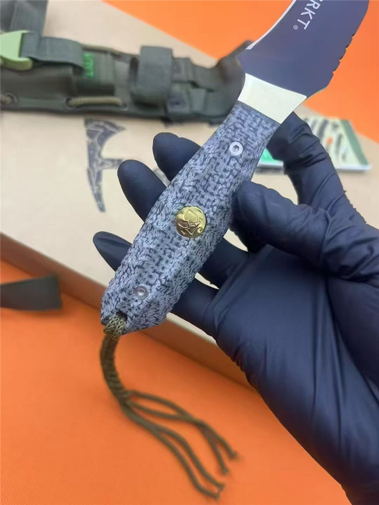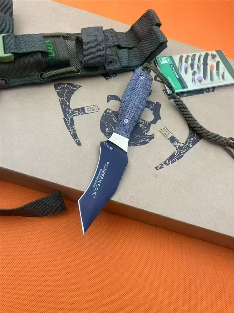全 长:21cm 刃 长:9cm 柄 长:11cm 刃 宽:3cm(最宽处) 刃 厚:0.41cm 刃 材:7Cr13 硬 度:58HRC 刀 柄:进口亚麻 表 面:氧化黑 刀 重:190克 总 重:400克(含包装物) 备 注:战术尼龙套