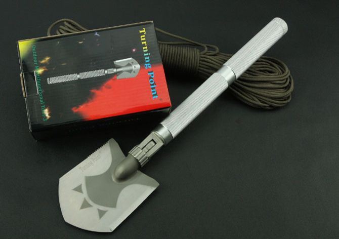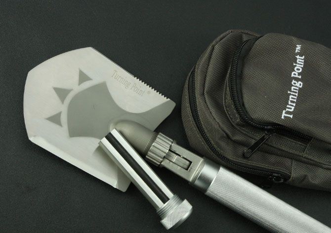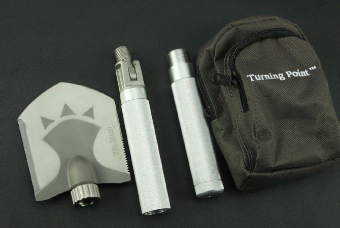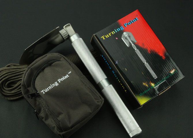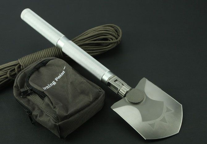 熊爪—玲珑户外铲 全 长:410mm 刃 长:75mm 柄 长:255mm 刃 宽:95mm 刃 厚:1.8mm 刃 材:5Cr13Wov 重 量:670g(含包装) 硬 度:56HRC 表 面:砂光 柄 材:铝柄(分三节) 锁 型:定锁 其 他:配尼龙和彩盒套