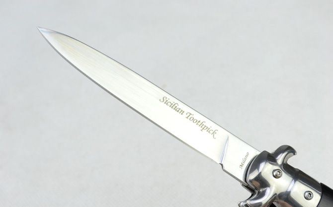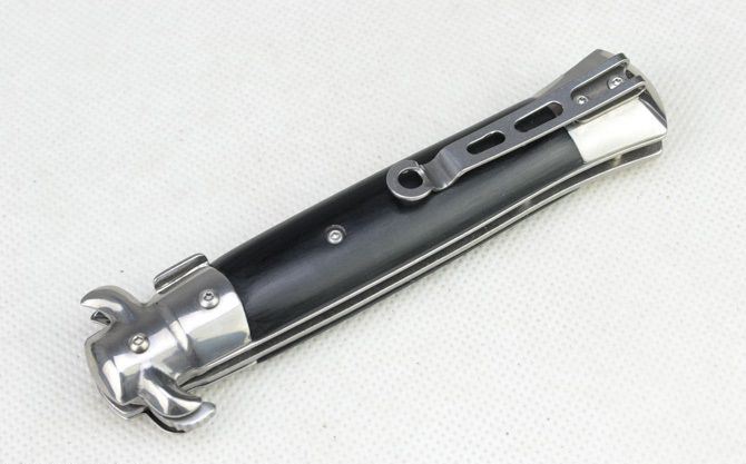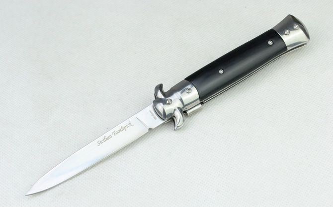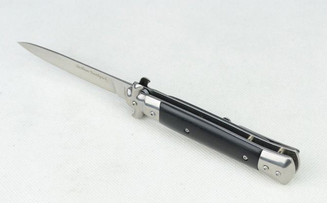 黑手党3号快开(黒木柄) 全长:23.3CM 刃长:10.3CM 刃厚:0.26CM 刃宽:1.6CM (最宽处) 刃材:440 硬度:55HRC 柄长:13CM 重量:123克(含纸盒子) 涂层:镜光 柄材:黑木 锁定:线锁 其他:带腰夹