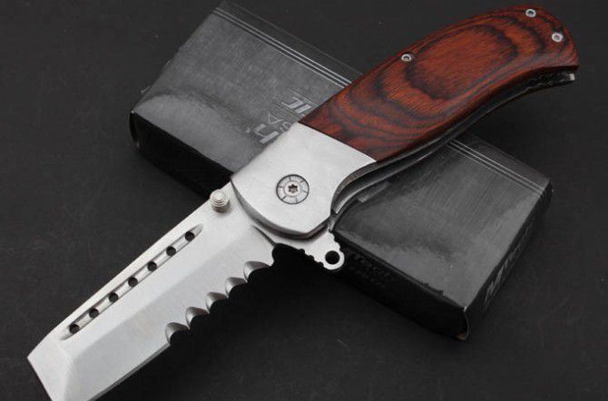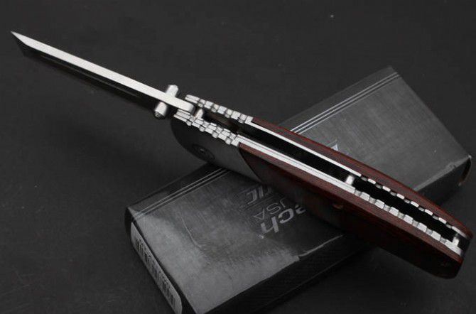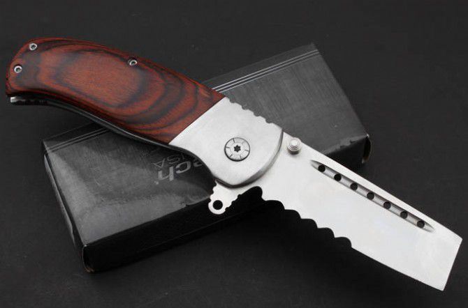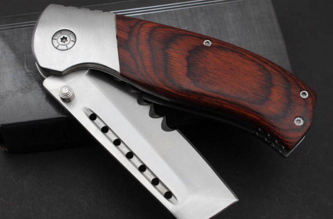 平头小子折刀(红彩木/黑G10柄) 全 长:204mm 刃 长:82mm 柄 长:122mm 刃 宽:22mm 刃 厚:3.8mm 刃 材:7Cr17 重 量:244g(含包装) 硬 度:57HRC 表 面:砂光 柄 材:钢头和彩木和G10 锁 型:线锁 其 他:配彩盒