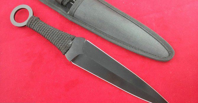 全长:30.5CM 刃长:17CM 刃厚:0.5CM 最宽:4.2CM 柄材料:一体缠粗绳子 刃材料:420不锈钢 表面:焗黑漆面 重量:185克(单只) 刀鞘:尼龙(两支)