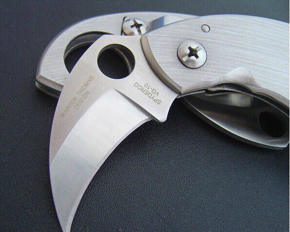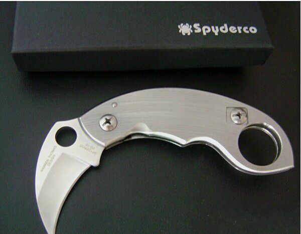 美国Spyderco公司在与华伦‧汤玛士(Warren Thomas)合作下正式推出了此把2004年新刀─虎爪雄鹰防卫刀─KARAMBIT。拥有1.3公分直径必备圆孔以及南非格斗刀Sebenza刀款特有的整合锁定(Integral liner lock)!优质的440刃材料,使得一种传古实用的爪刀发挥现代的惊人效果!