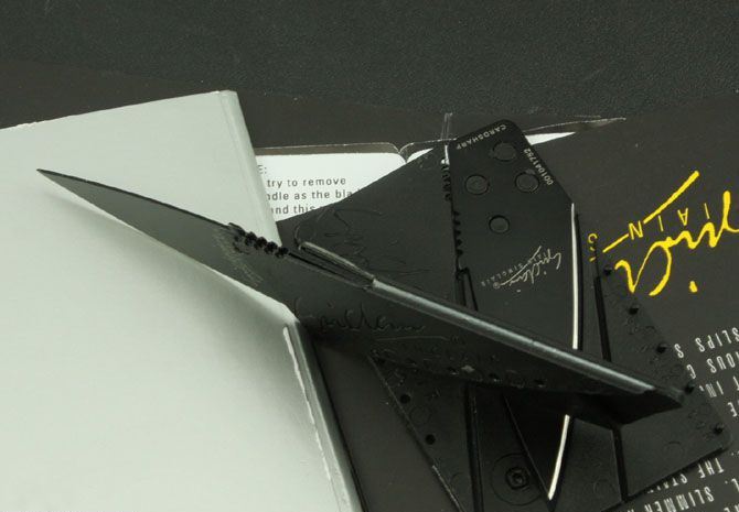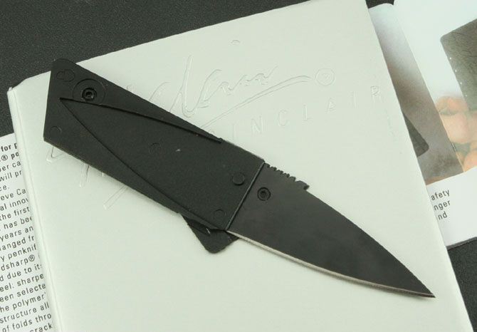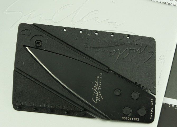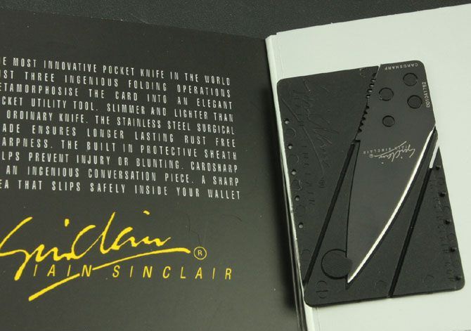 信用卡随身折叠刀 全 长:140mm 刃 长:65mm 柄 长:90mm 刃 宽:21mm 刃 厚:0.8mm 刃 材:5Cr13Mov 重 量:46g(含包装) 硬 度:56HRC 表 面:氧化黑 柄 材:ABS 锁 型:折叠刀 其 他:配说明书和纸盒