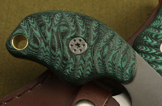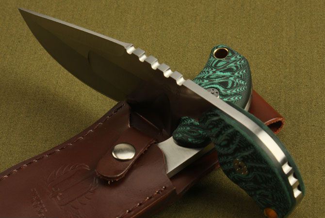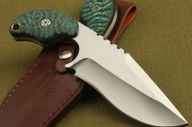 米克—SLCC梦魔 全长:20cm 刃长:13.5cm 柄长:6cm 刃厚:5.3mm 刃宽: 4.5cm 刃材: 7Cr17 柄材: 米卡塔 硬度: 58HRC 净重:255克 毛重:340克(含包装物) 表面处理:全手工砂光