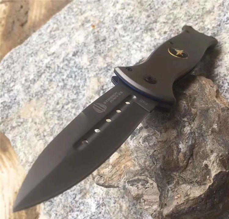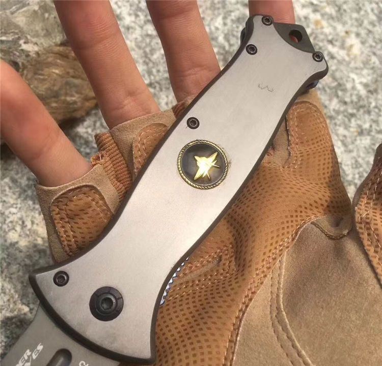 刃材:3Cr13 硬度:56HRC 全长:22CM 刃长:9CM 刃厚:0.25CM 刃宽:2.5CM (最宽处) 柄长:13CM 重量:140克 涂层:钛离子 柄材:全钢 锁定:快开