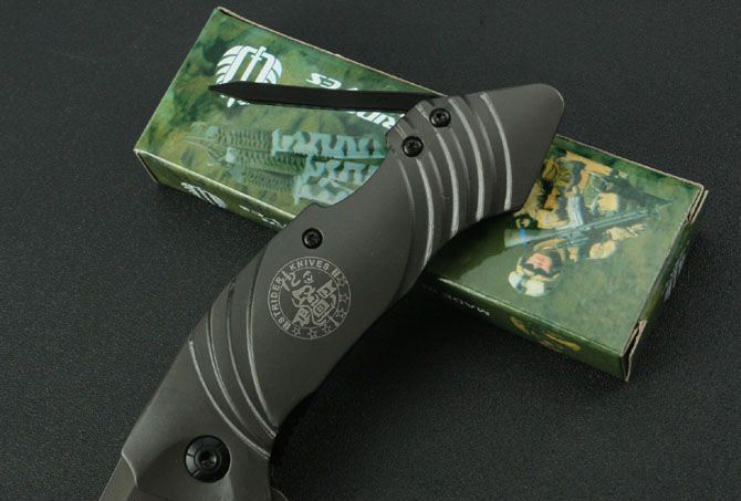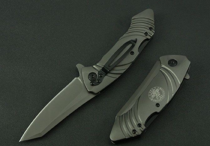 米克—X25折刀 全 长:196mm 刃 长:85mm 柄 长:115mm 刃 宽:27mm 刃 厚:2.8mm 刃 材:3Cr13Wov 重 量:180g(含包装) 硬 度:55HRC 表 面:灰钛 柄 材:全钢 锁 型:快开 其 他:彩盒