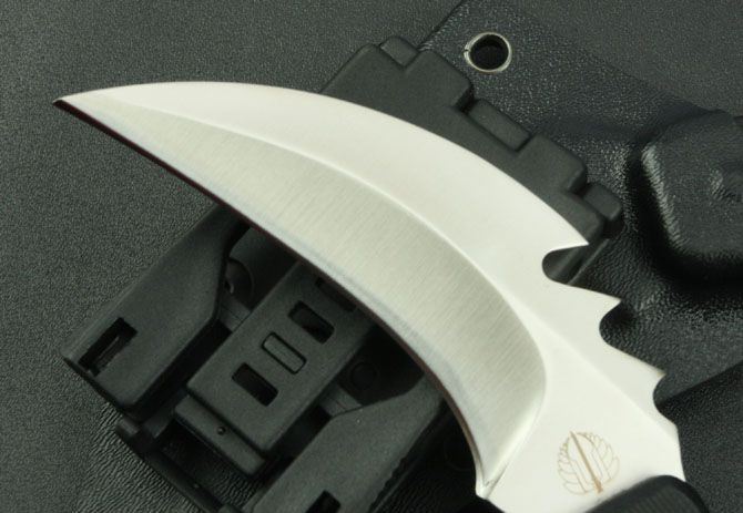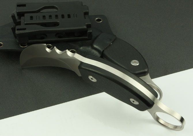 米克—鸡冠爪 全 长:180mm 刃 长:85mm 柄 长:105mm 刃 宽:34mm 刃 厚:4.7mm 刃 材:7Cr17Mov 重 量:248g(含包装) 硬 度:57HRC 表 面:砂光 柄 材:黑G10 锁 型:定锁 其 他:K鞘