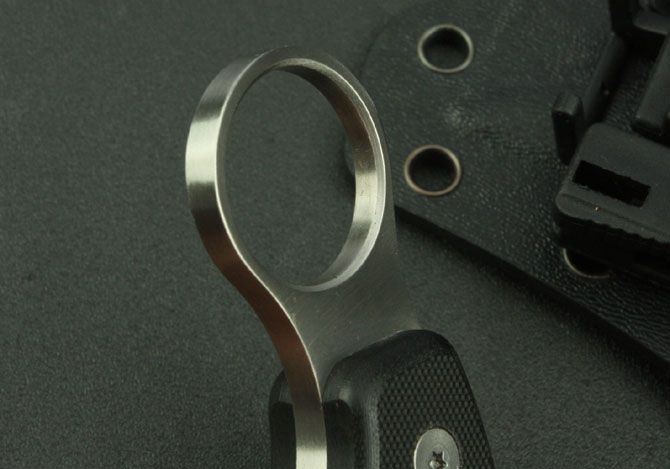 全 长:180mm 刃 长:85mm 柄 长:105mm 刃 宽:34mm 刃 厚:4.7mm 刃 材:7Cr17Mov 重 量:248g(含包装) 硬 度:57HRC 表 面:砂光 柄 材:黑G10 锁 型:定锁 其 他:K鞘