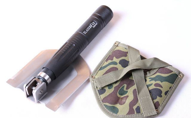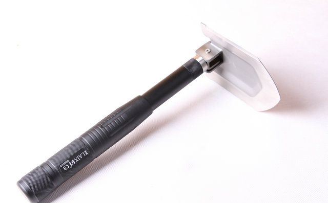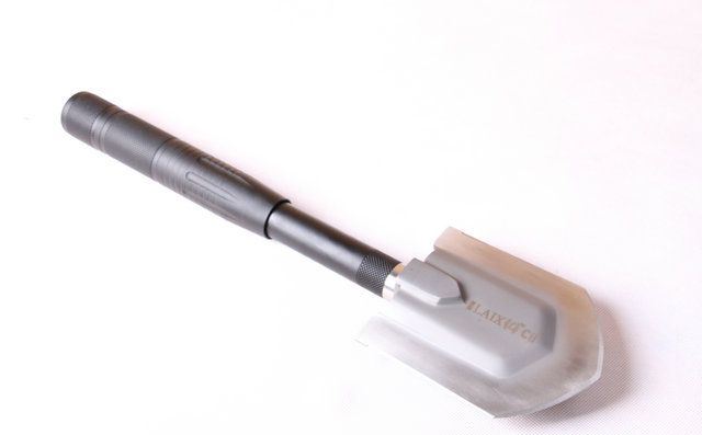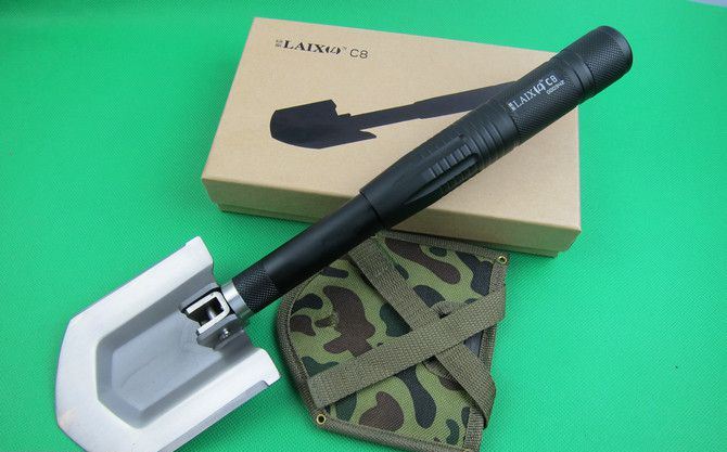 睐斯C8多用工具铲 伸展长度:41.8cm 折叠长度:23.5cm 锹面尺寸:13.2*11.1cm 刀刃长度:9cm 厚度:2.1mm 重量:约750g (含包装物) 刃材:进口不锈钢 柄材:加厚航空铝材 包装:迷彩牛津布袋子,可挂腰上 特点:手柄拉缩型,方便折叠,当手柄拉尽时,再反时针扳转手柄,螺纹已紧.收回时,顺时针返回,再往回拉,完成手柄伸缩程序.