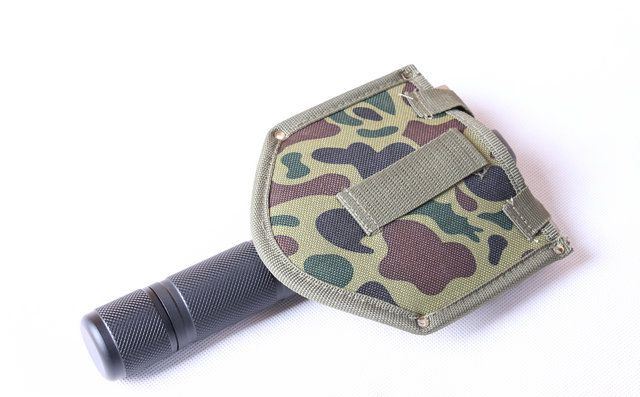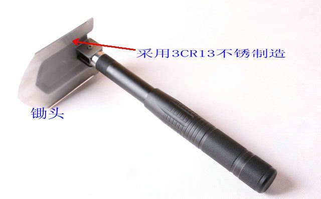 伸展长度:41.8cm 折叠长度:23.5cm 锹面尺寸:13.2*11.1cm 刀刃长度:9cm 厚度:2.1mm 重量:约750g (含包装物) 刃材:进口不锈钢 柄材:加厚航空铝材 包装:迷彩牛津布袋子,可挂腰上 特点:手柄拉缩型,方便折叠,当手柄拉尽时,再反时针扳转手柄,螺纹已紧.收回时,顺时针返回,再往回拉,完成手柄伸缩程序.
