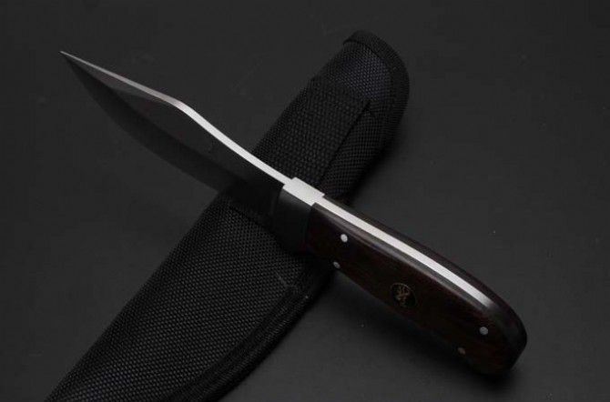 勃朗宁.A37直刀 全 长: 23.1cm 刃 长: 11.5cm 柄 长: 11.0cm 刃 厚: 3.9mm 刃 材: 5Cr13MOV 硬 度: 57HRC 总 重: 210克 净 重: 320克 表 面: 沙光 柄 材: 钢头+天然黑檀木 刀 鞘: 尼龙套 其 它: 出口原厂包装