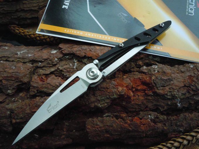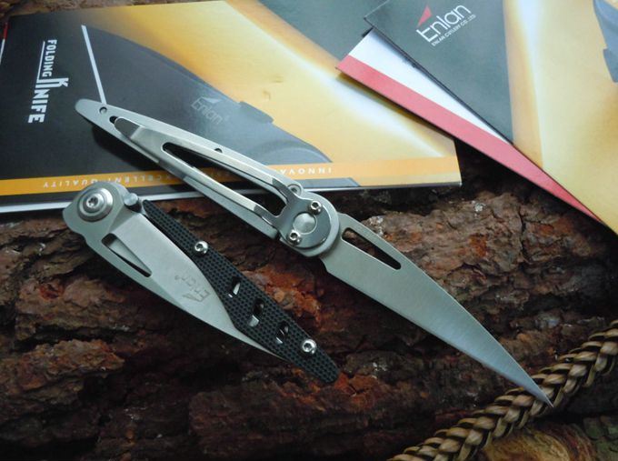 Enlan鹰朗S01长嘴鹤EDC小刀 全长:15.5 刃长:6.5 刃厚:0.3 刃材料:8铬13 重量:30克 表面:钢质砂面,刀柄钢框架+防滑G10 国产新秀鹰朗品牌系列,S01长嘴鹤EDC折刀,采用开放式框架手柄,重量只有30克,813平磨锋刃,非常锐利(打开要小心),小背扣提供卓越的便携性