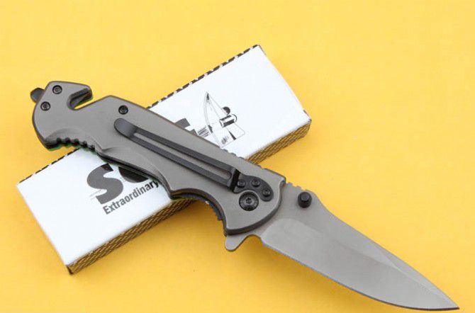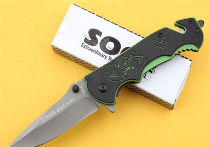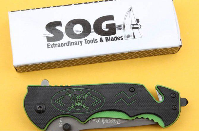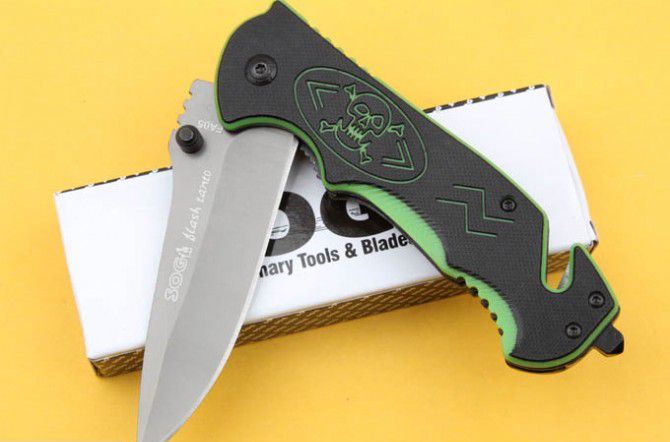 SOG-FA05折刀 全 长:202m 刃 长:86mm 柄 长:116mm 刃 宽:30mm 刃 厚:2.mm 刃 材:3Cr13Mov 重 量:150g(含包装) 硬 度:55HRC 表 面:镀钛 柄 材:钢 锁 型:快开 其 他:配彩盒