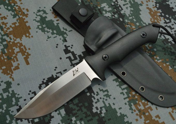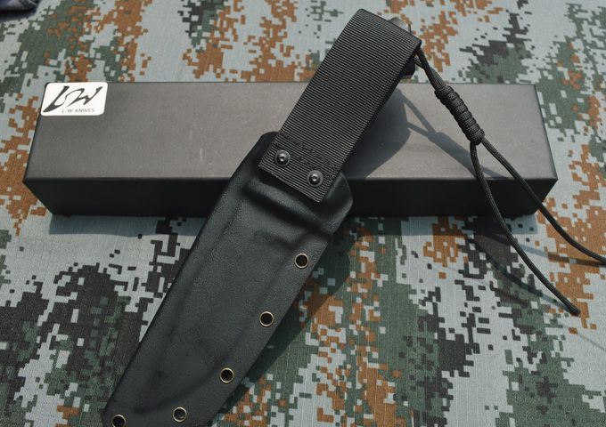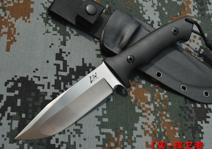 LW(利威)-捍卫者小直 刃材:A2 全长:26.5cm 刃长:13.5cm 刃厚:0.53cm 表面:砂光、缎面拉丝 硬度:59-60hrc (真空油淬热处理) 手柄:G10 刀鞘:进口Kydex鞘