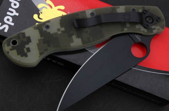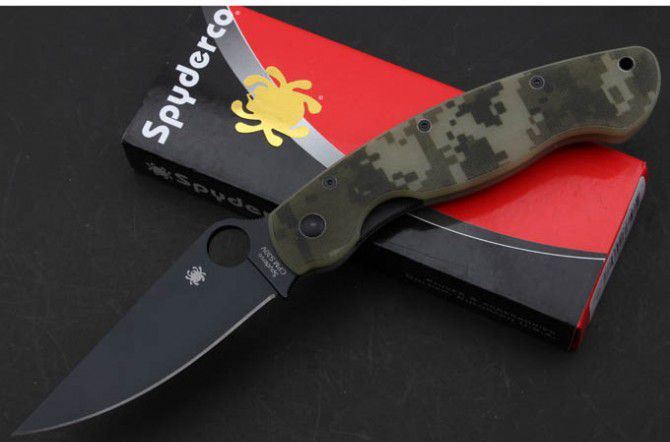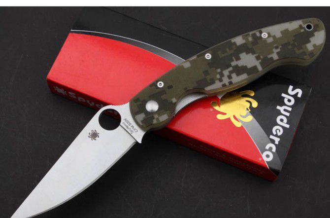 代工蜘蛛.C36GPE折刀(沙光/黑钛) 全 长:242mm 刃 长:90mm 柄 长:140mm 刃 宽:32mm 刃 厚:3.8mm 刃 材:CPM-S30V 重 量:170g(含包装) 硬 度:58HRC 表 面:砂光 柄 材:迷彩G10 锁 型:线锁 其 他:配彩盒和出世纸