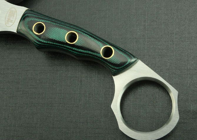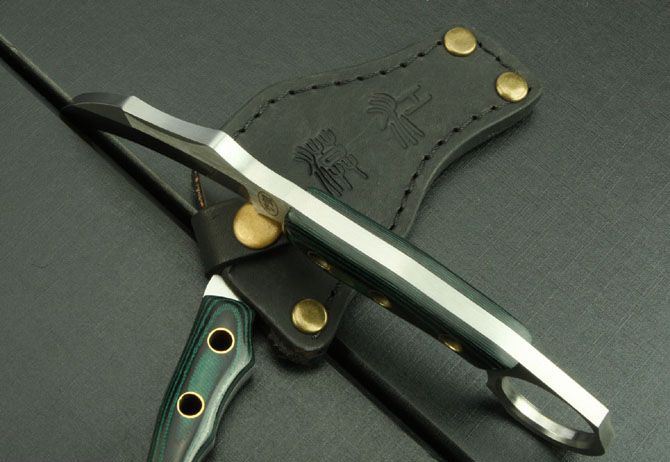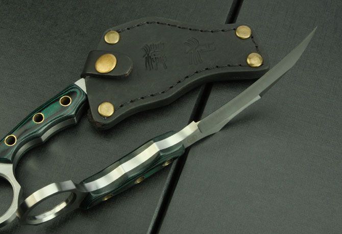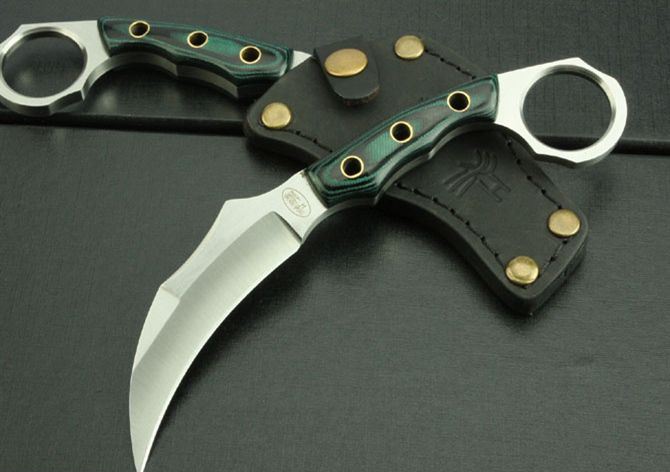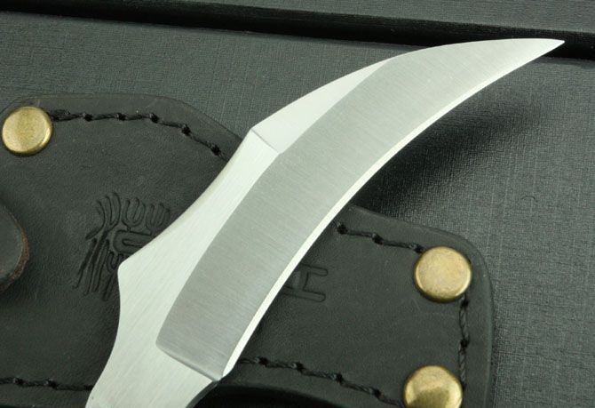新一代幽灵爪刀(米克塔柄) 全 长:170mm 刃 长:74mm 柄 长:92mm 刃 宽:24mm 刃 厚:4.8mm 刃 材:5Cr13Mov 重 量:109g(含包装) 硬 度:57HRC 表 面: 砂光 柄 材:米克塔柄 锁 型:定锁 其 他:配皮套
