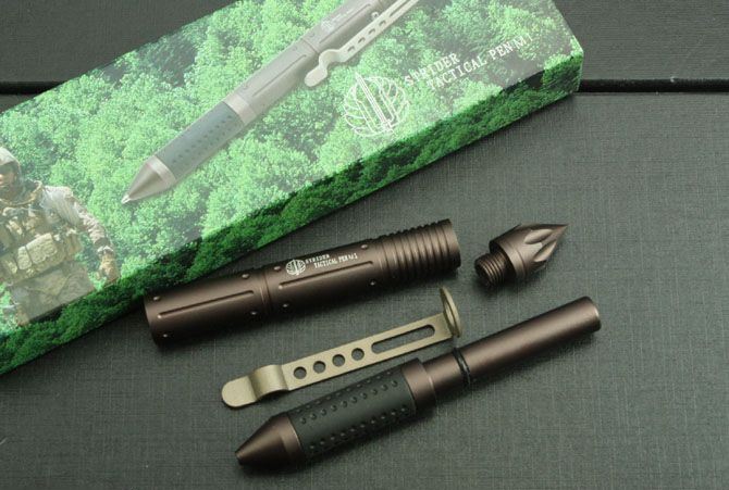 Strider-M1战术防卫笔 笔身材质:航天铝合金6061 尺寸:17CM*1.4CM 笔芯:优质圆珠笔芯