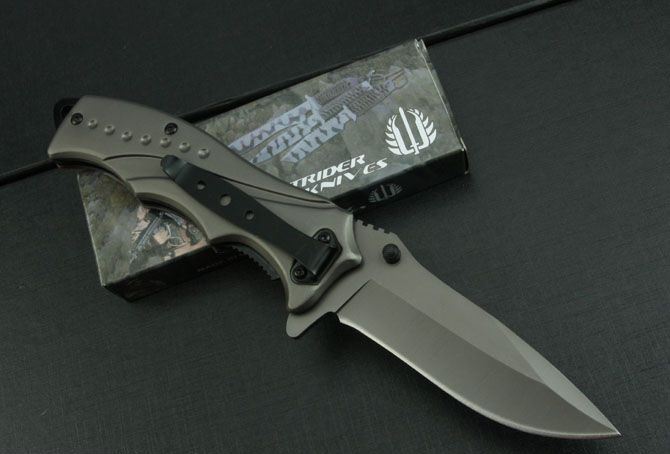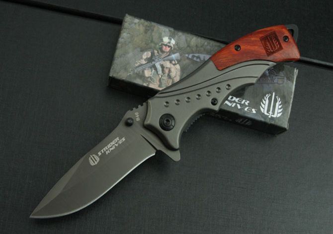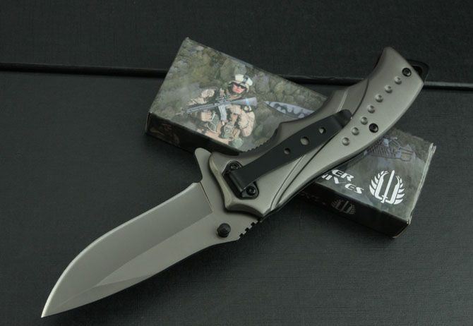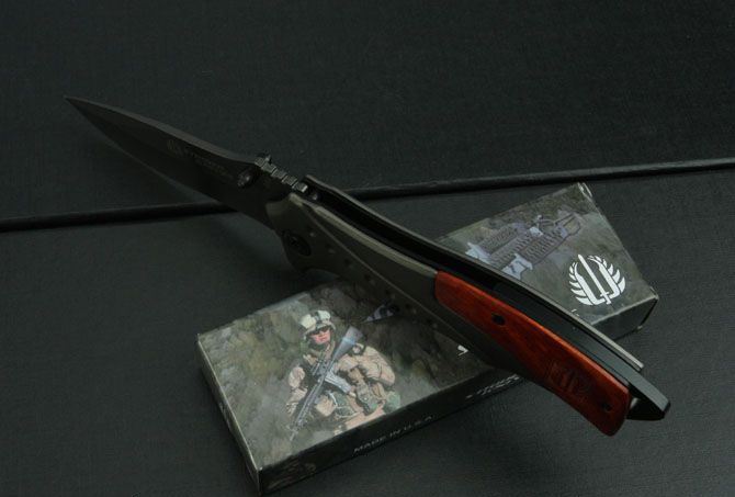 米克—B46折刀(钛版和镜光) 全 长:212mm 刃 长:85mm 柄 长:123mm 刃 宽:26mm 刃 厚:3mm 刃 材:3Cr13Mov 重 量:188g(含包装) 硬 度:55HRC 表 面:钛版和镜光 柄 材:钢头和酸枝柄 锁 型:快开 其 他:配彩盒