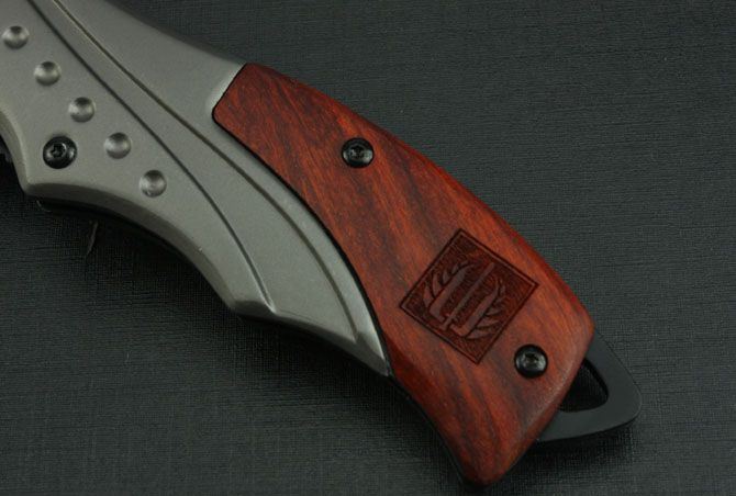 全 长:212mm 刃 长:85mm 柄 长:123mm 刃 宽:26mm 刃 厚:3mm 刃 材:3Cr13Mov 重 量:188g(含包装) 硬 度:55HRC 表 面:钛版和镜光 柄 材:钢头和酸枝柄 锁 型:快开 其 他:配彩盒