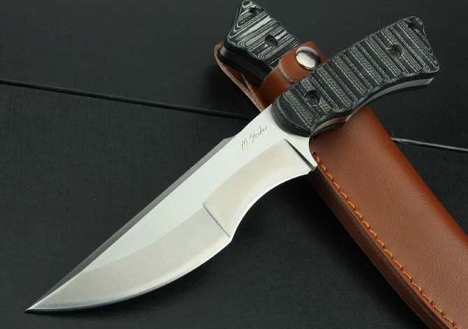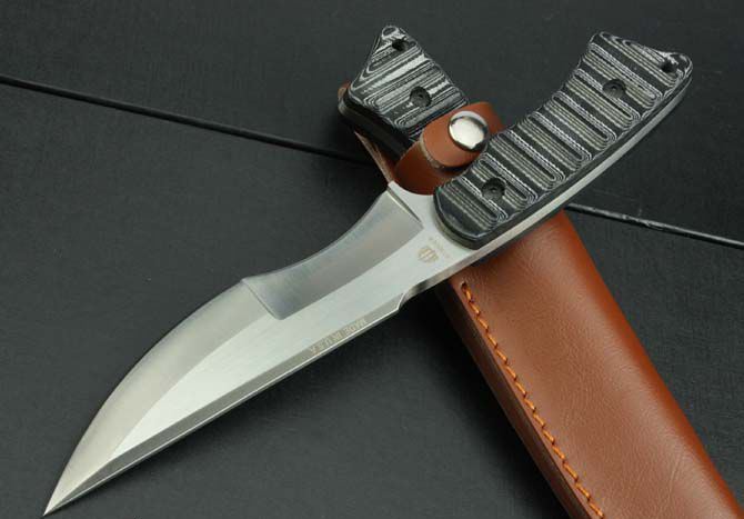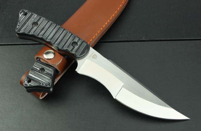 全 长:260mm 刃 长:148mm 柄 长:108mm 刃 宽:38mm 刃 厚:6mm 刃 材:7Cr17Mov 重 量:395g(含包装) 硬 度:58HRC 表 面:砂光 柄 材:双色米克塔 锁 型:定锁 其 他:配皮套和牛皮纸盒