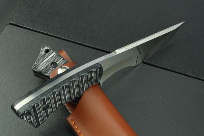 米克—极度狼刀 全 长:260mm 刃 长:148mm 柄 长:108mm 刃 宽:38mm 刃 厚:6mm 刃 材:7Cr17Mov 重 量:395g(含包装) 硬 度:58HRC 表 面:砂光 柄 材:双色米克塔 锁 型:定锁 其 他:配皮套和牛皮纸盒