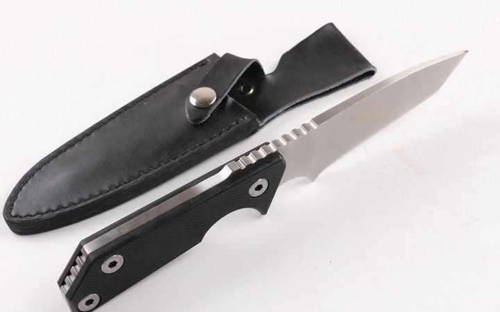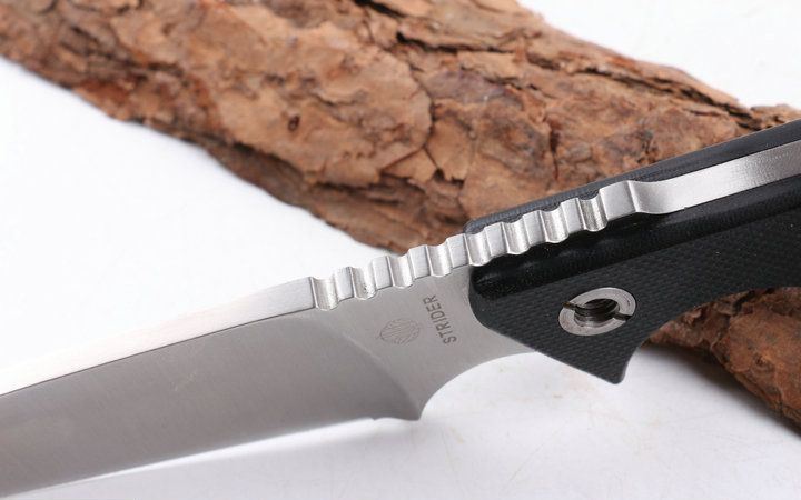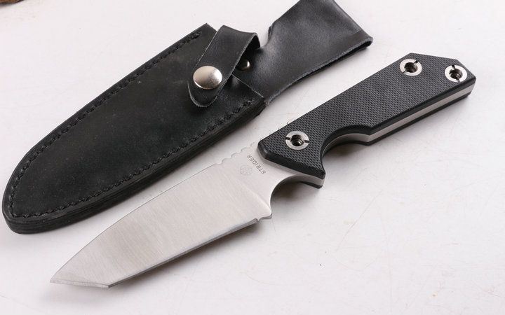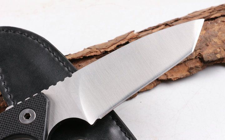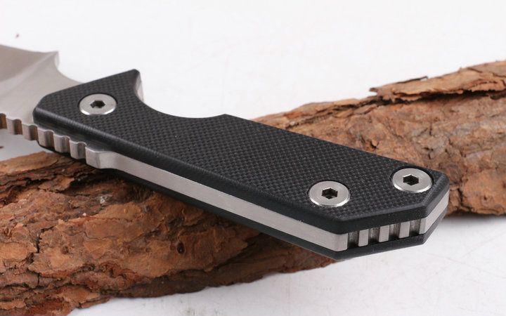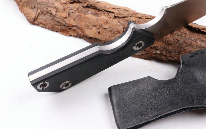 刀 柄:人体工程学手型,格纹防滑G10柄片,两边柄片与一体的钢柄形成凹槽,增强手感,同时也增加了做工难度