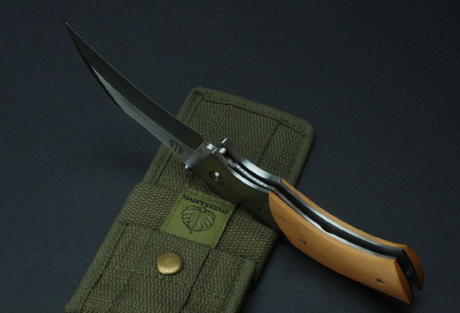 挺进者—夜鹰计划折刀 全长:10cm 刃宽:3.4cm 刃厚:0.34cm 刃材:进口D2 硬度:60—62HRC 柄长:13cm 刀重:245克 总重:410克(含包装物) 柄材:珍贵黄檀木(刀柄上会残留香味) 表面:砂光 品质:高品质