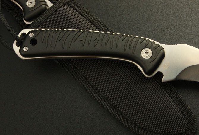 全 长: 31.5cm 刃 长: 17cm 刃 厚: 4.8mm 柄 长: 13.5cm 重 量: 340g 刃 材: 7Cr17 柄 材: ABS 硬 度: 58HRC 表 面: 砂光 刀 鞘: 尼龙套