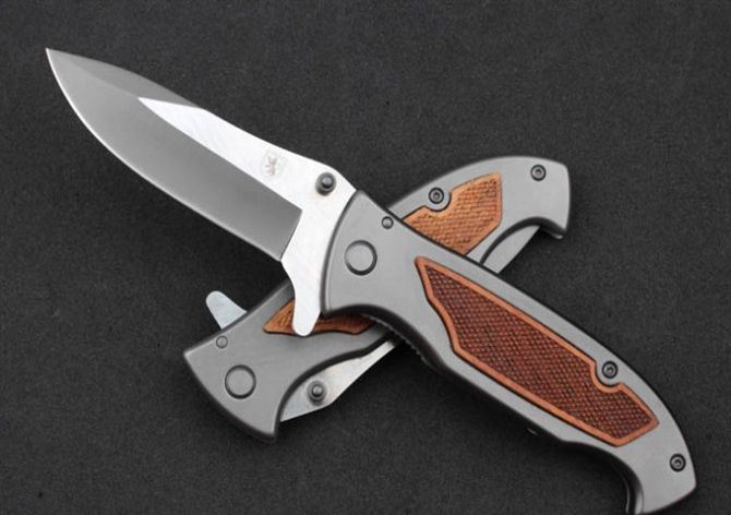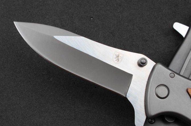 CAT-010折刀 全 长:208mm 刃 长:198mm 柄 长:85mm 刃 宽:123mm 刃 厚:2.7mm 刃 材:3Cr13 重 量:163g(含包装) 硬 度:55HRC 表 面:沙光 柄 材:钢柄+塑胶 锁 型:侧锁 其 他:纸盒