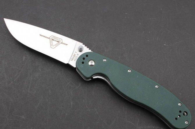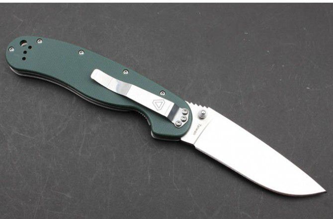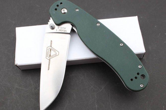 安大略RAT-18868折刀加强版(草绿色和黑色) 刃 材 :AUS-8 全 长 :22.8cm 柄 长 :13.2cm 刃 长 :9.6cm 刃 厚 :0.38cm 表面处理 :砂光 硬 度 :58-59HRC (真空热处理) 柄 材 :G10 毛 重:188g(含彩盒) 产 地 :TAIWAN 台湾OEM
