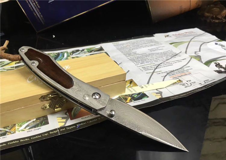 克里斯里夫F106大马士折刀 全 长:19.7cm 刃 长:8cm 柄 长:11.5cm 刃 厚:3.0mm 刃 材:大马士革钢 硬 度:58HRC 刀 柄:蛇纹木+大马士革钢手柄 表 面:大马士革花纹 锁定方式:定锁 重 量:230.0克