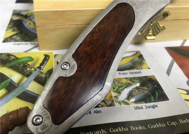 全 长:19.7cm 刃 长:8cm 柄 长:11.5cm 刃 厚:3.0mm 刃 材:大马士革钢 硬 度:58HRC 刀 柄:蛇纹木+大马士革钢手柄 表 面:大马士革花纹 锁定方式:定锁 重 量:230.0克