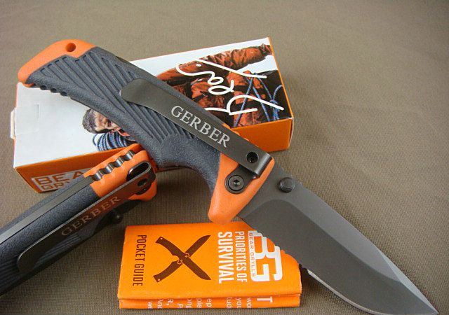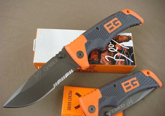 贝尔求生折刀(中号) 全 长:19cm 刃 长:8.3cm 柄 长:10cm 刃 宽:2.5cm(最宽处) 刃 厚:3mm 刃 材:7Cr17MoV 硬 度:55HRC 刀 柄:二次注塑手柄.握力强 表 面:镀钛 备 注:带坚固背夹, 毛 重:80g