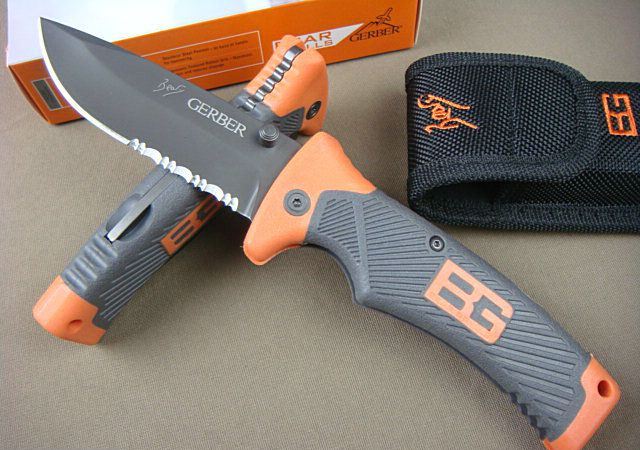 正品贝尔求生折刀套装版(大号) 全 长:21.5cm 刃 长:9.6cm 柄 长:12cm 刃 宽:2.6cm(最宽处) 刃 厚:39mm 刃 材:7Cr17MoV 硬 度:57HRC 刀 柄:二次注塑手柄.握力强 刀 重:120克 总 重;190克(含包装) 备 注:带高品质牛津袋和彩合,说明书.